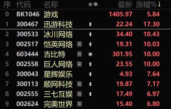 【大河财立方 记者 王宇】6月30日股票配资官网平台,游戏板块持续拉升。截至上午收盘,板块涨幅达5.84%,冰川网络、恺英网络、巨人网络、吉比特涨停,迅游科技涨超17.3%,三七互娱、完美世界等个股涨超6%。